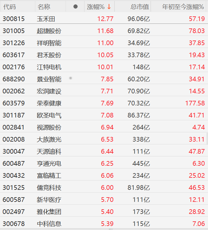 格隆汇8月11日|A股市场机器人概念股全线大涨,其中,玉禾田涨超12%,超捷股份、祥明智能涨超11%,君禾股份(603617)、江特电机(002176)10CM涨停,景业智能、宏润建设(002062)、荣泰健康(603579)、欧圣电气涨超7%,视源股份(002841)、大族激光(002008)、天源迪科(300047)、亨通光电(600487)、富临精工(300432)、儒竞科技涨超6%。
