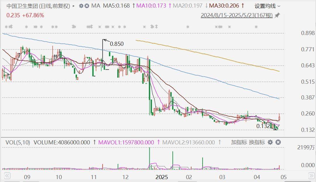 格隆汇5月23日|中国卫生集团(0673.HK)今日复牌高开,盘初一度涨85.71%,报0.26港元,唯成交较淡,截至目前仅成交不到百万港元。