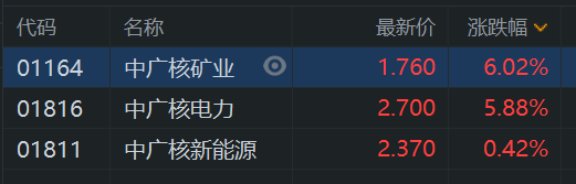 格隆汇5月26日|港股核电股集体拉升走高,其中,中广核矿业一度涨超7%,中广核电力涨近6%,中广核新能源跟涨。