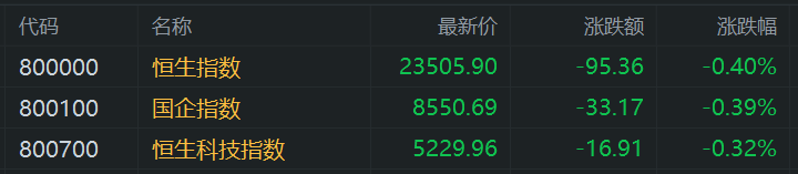 格隆汇5月26日|港股三大指数集体低开,恒指跌0.4%,国指跌0.39%,恒生科技指数跌0.32%。盘面上,大型科技股普遍下跌但总体跌幅不大,其中,京东、小米、腾讯、美团、阿里巴巴、百度等明星股跌幅均在1%以内;汽车股多数走低,吉利汽车跌跌近3%,蔚来汽车、比亚迪(002594)股份、小鹏汽车跌超1%;煤炭股、苹果概念股、体育用品股、光伏股普跌。此外,Q1利润较上年同期下降29%,名创优品大跌近15%。另一方面,核电股、影视娱乐股、生物医药股多数上涨,其中,中广核矿业涨超4%,阿里影业涨3.9%,信达生物涨超3%。(格隆汇)