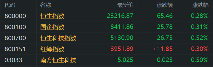 格隆汇5月27日|隔夜美股休市,欧股大幅上涨。港股三大指数低开,恒指跌0.28%,国指跌0.31%,恒生科技指数跌0.52%。盘面上,大型科技股多数走低,其中,美团绩后大跌近5%,京东跌2%,阿里巴巴、小米、腾讯小幅下跌,百度、网易飘红;汽车股继续昨日下跌行情,比亚迪股份续跌1.65%,吉利汽车、华晨中国、北京汽车皆有跌幅;生物医药股、水务股、钢铁股、食品饮料股多数下跌。另一方面,昨日走低的苹果概念股反弹,机器人概念股、半导体股、石油股、黄金股部分上涨,吉宏股份上市首日大幅高开超43%。(格隆汇)