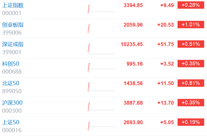 XM外汇官网:A股主要指数拉升,创业板指涨超1%,沪指涨0.28%,CRO概念、固态电池、化学医药、券商等领涨!近3500股上涨
