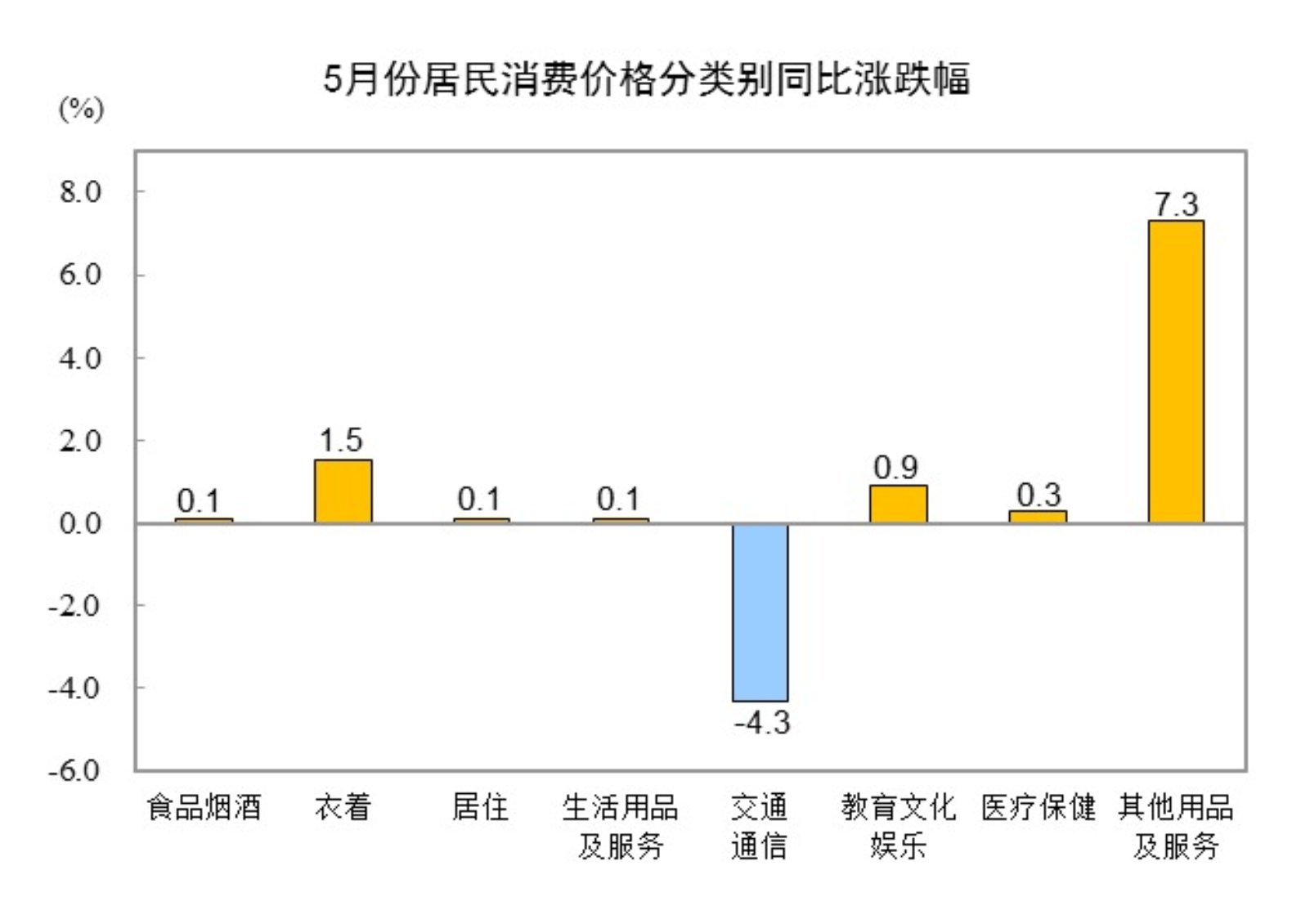 二是国内部分能源和原材料价格阶段性下行。煤炭需求处于淡季,电厂、港口存煤充足,加之新能源发电成本低、替代作用强,煤炭开采和洗选业价格下降3.0%,煤炭加工价格下降1.1%。南方地区高温雨水天气增多,影响部分房地产、基建项目施工,加之钢材、水泥等建材生产供给充足,黑色金属冶炼和压延加工业、非金属矿物制品业价格均下降1.0%,上述4个行业合计影响PPI环比下降约0.18个百分点。