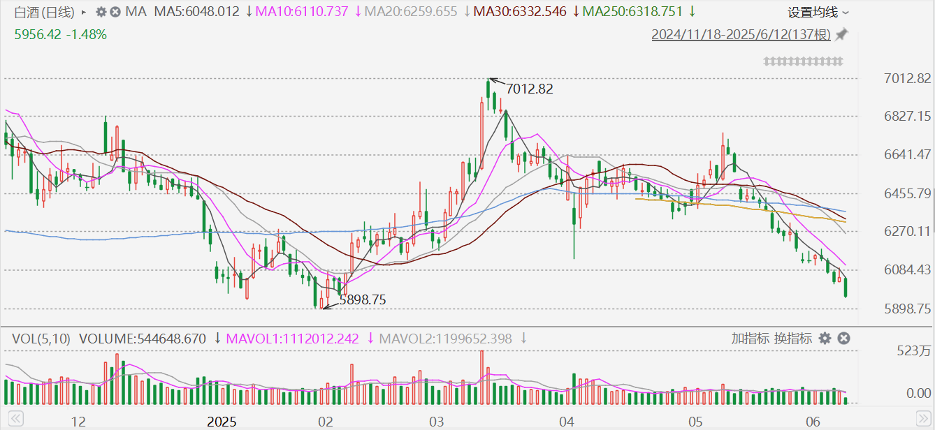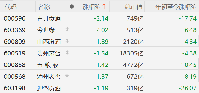 格隆汇6月12日|A股市场白酒股集体下跌,其中,古井贡酒(000596)、今世缘(603369)跌超2%,山西汾酒(600809)、贵州茅台(600519)、五粮液(000858)、泸州老窖(000568)、迎驾贡酒(603198)跌超1%。值得注意的是,随着近期白酒股的持续下跌,白酒指数创出4个月新低。