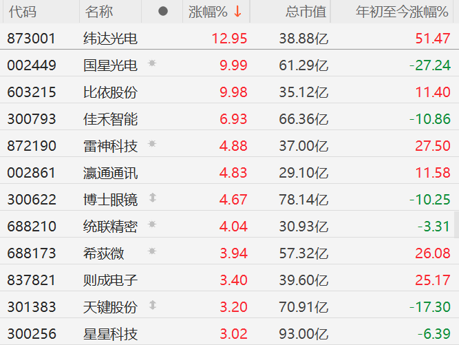格隆汇6月12日|A股市场AI眼镜概念走强,其中,纬达光电涨近13%,国星光电(002449)、比依股份10CM涨停,佳禾智能、雷神科技、瀛通通讯(002861)、博士眼镜(300622)、统联精密、希荻微、则成电子、天键股份、星星科技(300256)等跟涨。