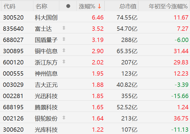 格隆汇6月12日|A股市场量子计算概念股上涨,其中,吉大正元涨停,科大国创(300520)涨超8%,神州信息(000555)、达华智能(002512)、光迅科技涨超4%,国盾量子、富士达、楚天龙涨超3%,铜牛信息、浙江东方(600120)、腾景科技、三未信安涨超2%。消息面上,英伟达首席执行官黄仁勋称,量子计算正迎来关键拐点,未来几年将强大到足以“解决一些有趣的全球性问题”。